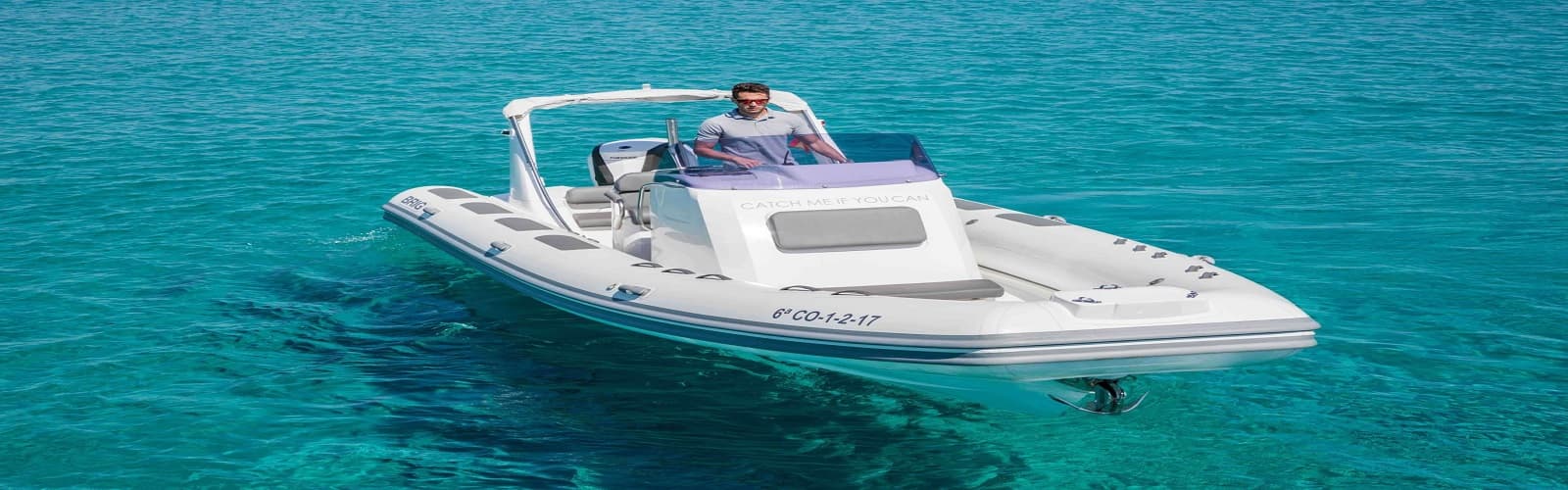 Our Brig 780 is the perfect companion for a day out exploring the shallow waters of Ibiza and Formentera. Fast and sleek this little 2018 rib is the perfect choice for the more adventurous sailors.