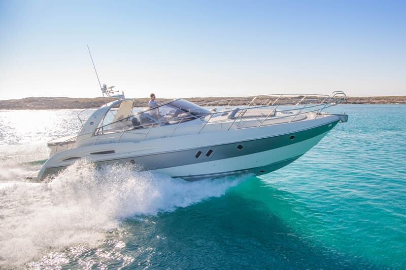 CRUISE IN STYLE An elegant and modern speedboat that adds a luxurious feel to your charter with polished wood furnishings, a plush cabin that enables you to spend the night aboard in total comfort, an elegant seating area and two spacious sunbathing areas at the front and back. Perfect for cruising around the Pityuses at your leisure.